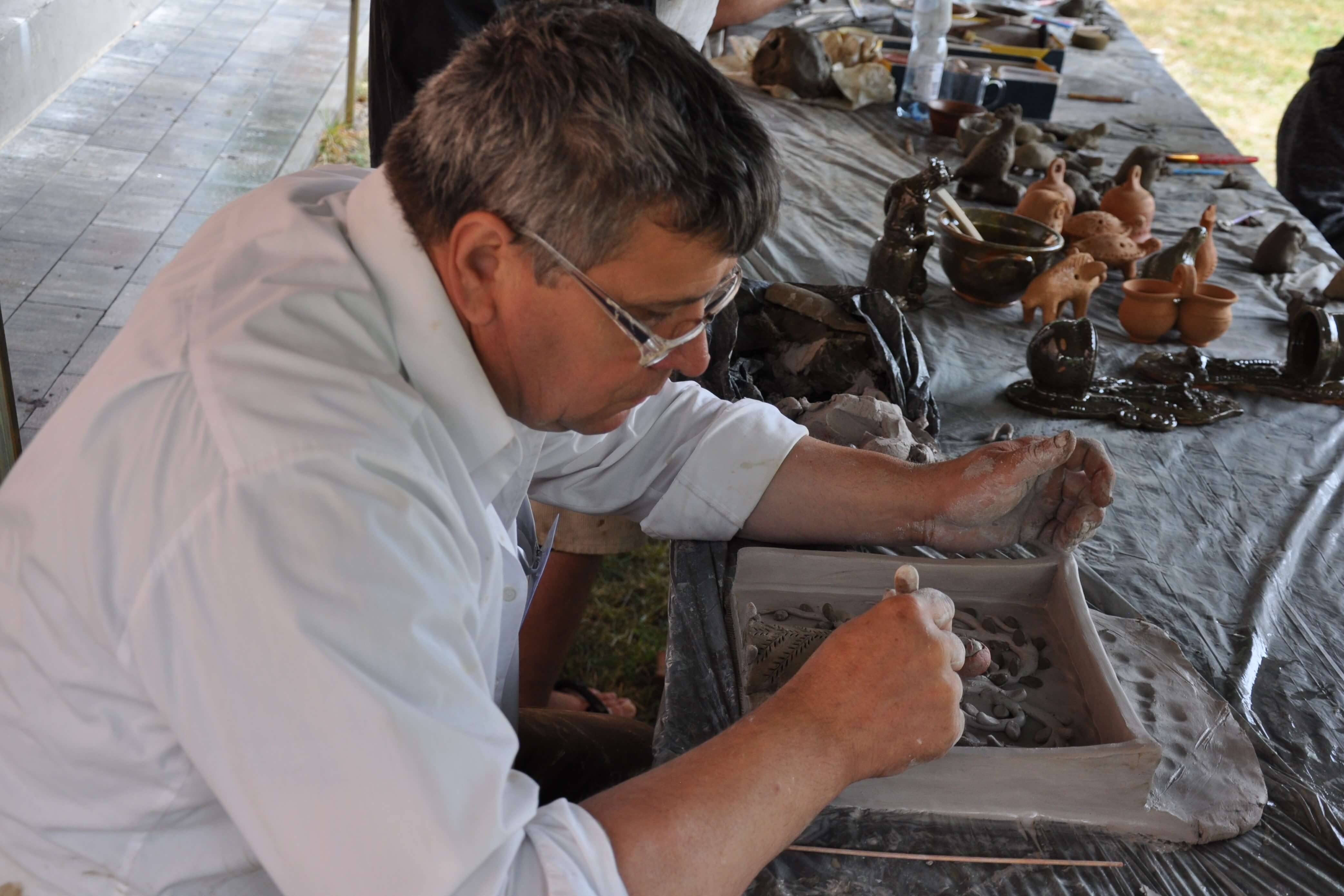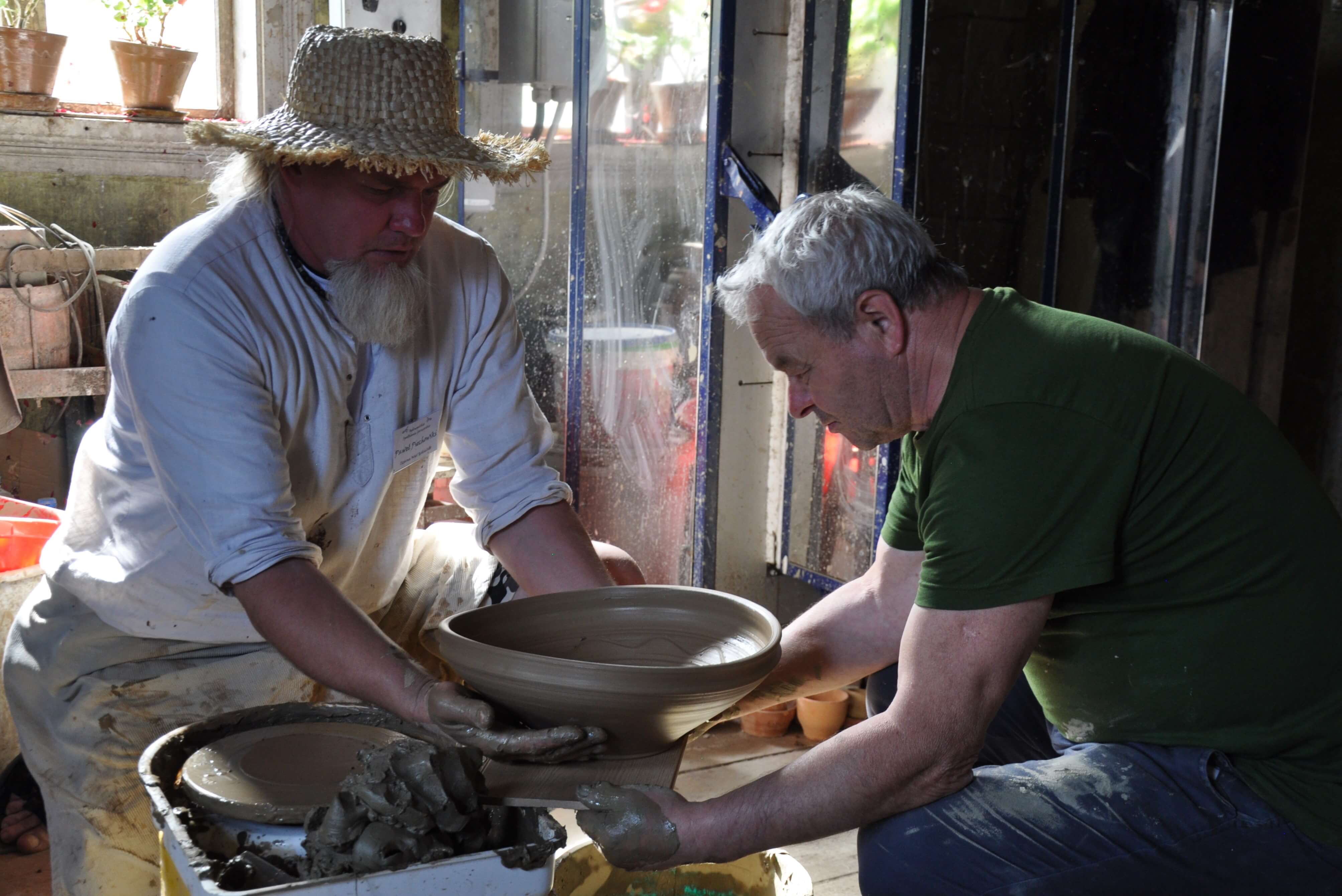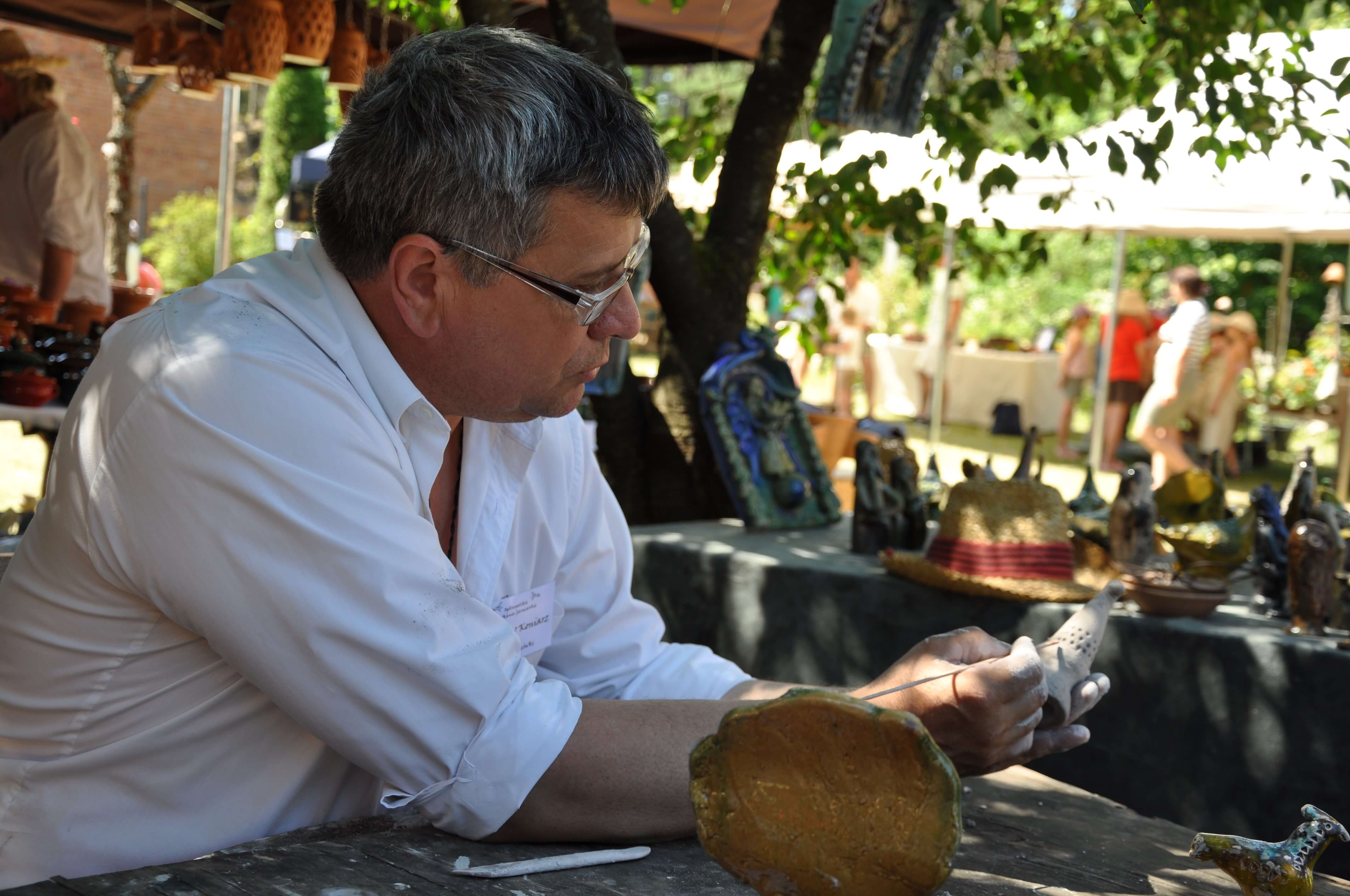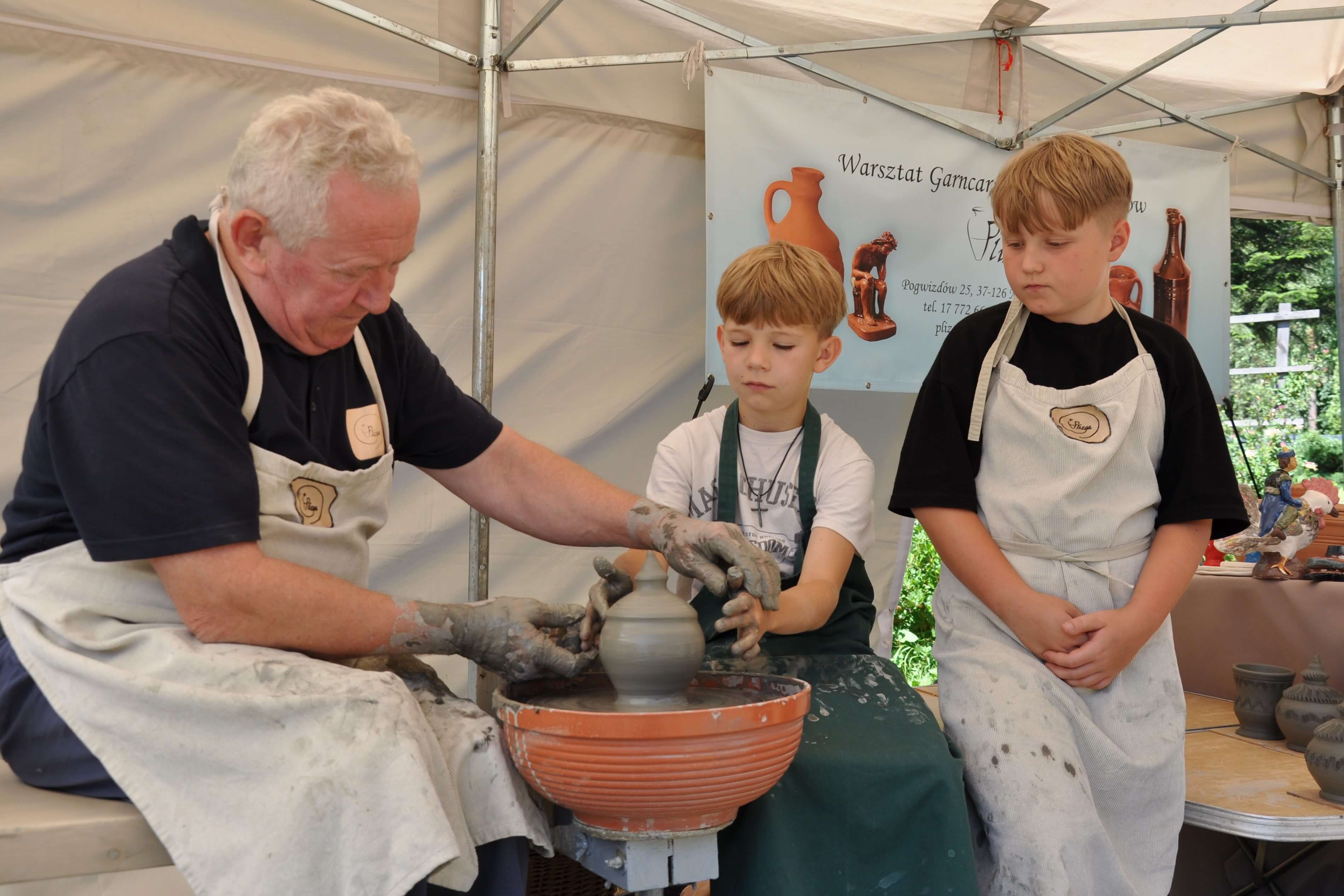 Spod palców uczestników warsztatów ceramiki tradycyjnej i warsztatów ręcznego formowania w glinie wyszły setki naczyń – kubeczków, misek, flakoników, przeróżnego rodzaju figurek, ptaszków i innych drobnych form glinianych. Wszystkie one były owocem pasji i skupienia oraz cennych uwag i niekiedy pomocy mistrzów garncarzy i ceramików. Dla wielu był to pierwszy kontakt z gliną, część to już weterani, którzy w Ogólnopolskich Spotkaniach Garncarskich uczestniczą niemal od pierwszej edycji. Jednym i drugim składamy serdeczne podziękowania. Dziękujemy również (a może przede wszystkim) naszym garncarzom i ceramikom bez których nie byłoby tych wartsztatów.
