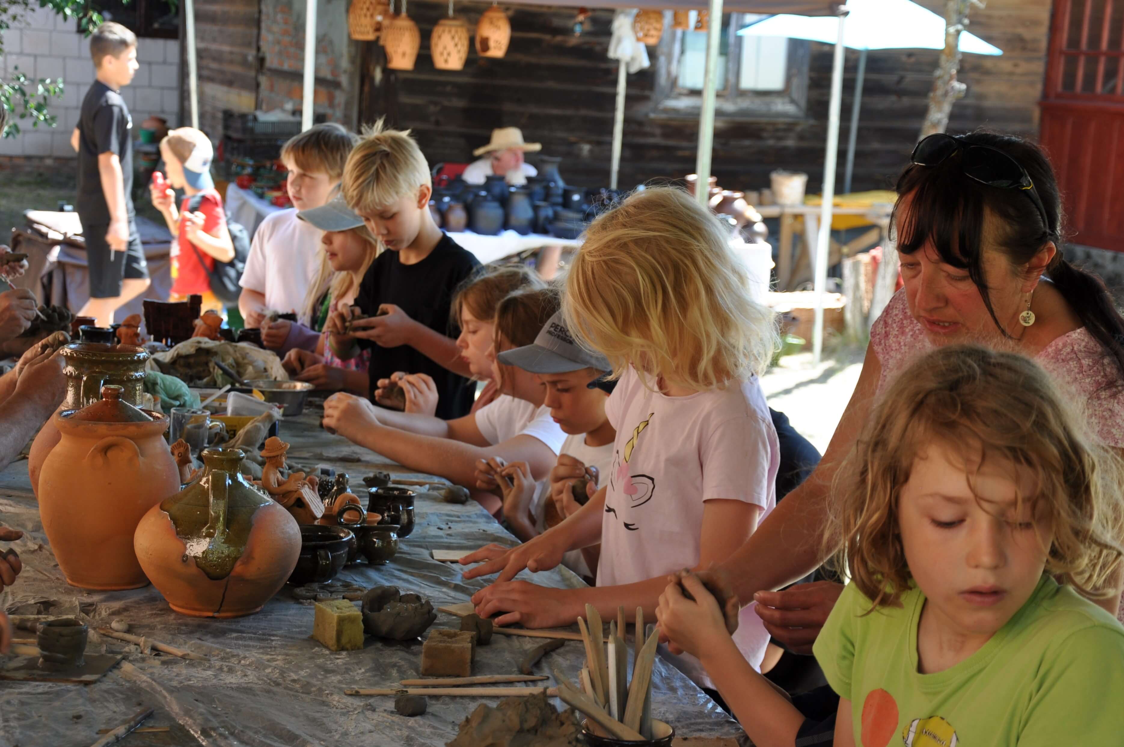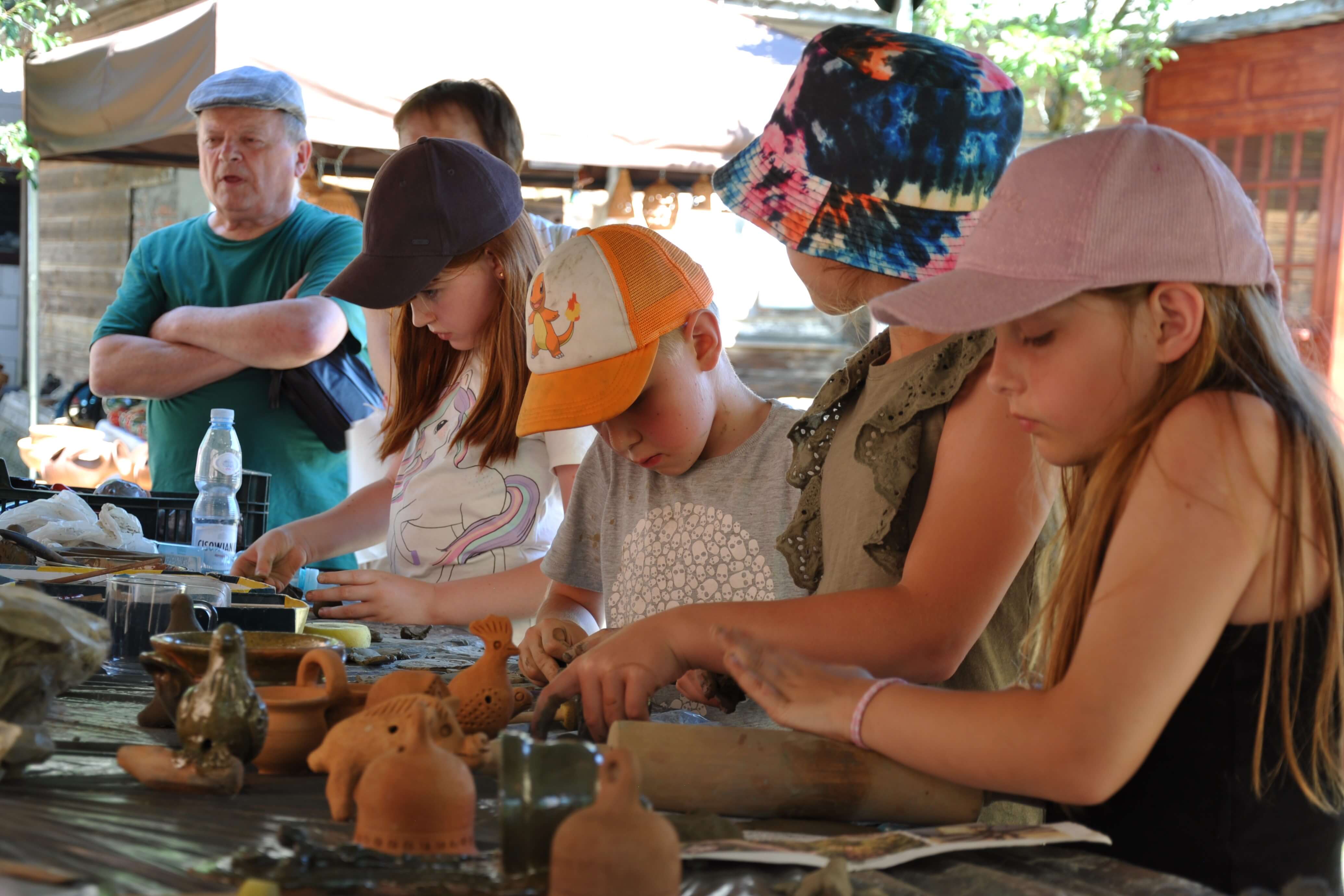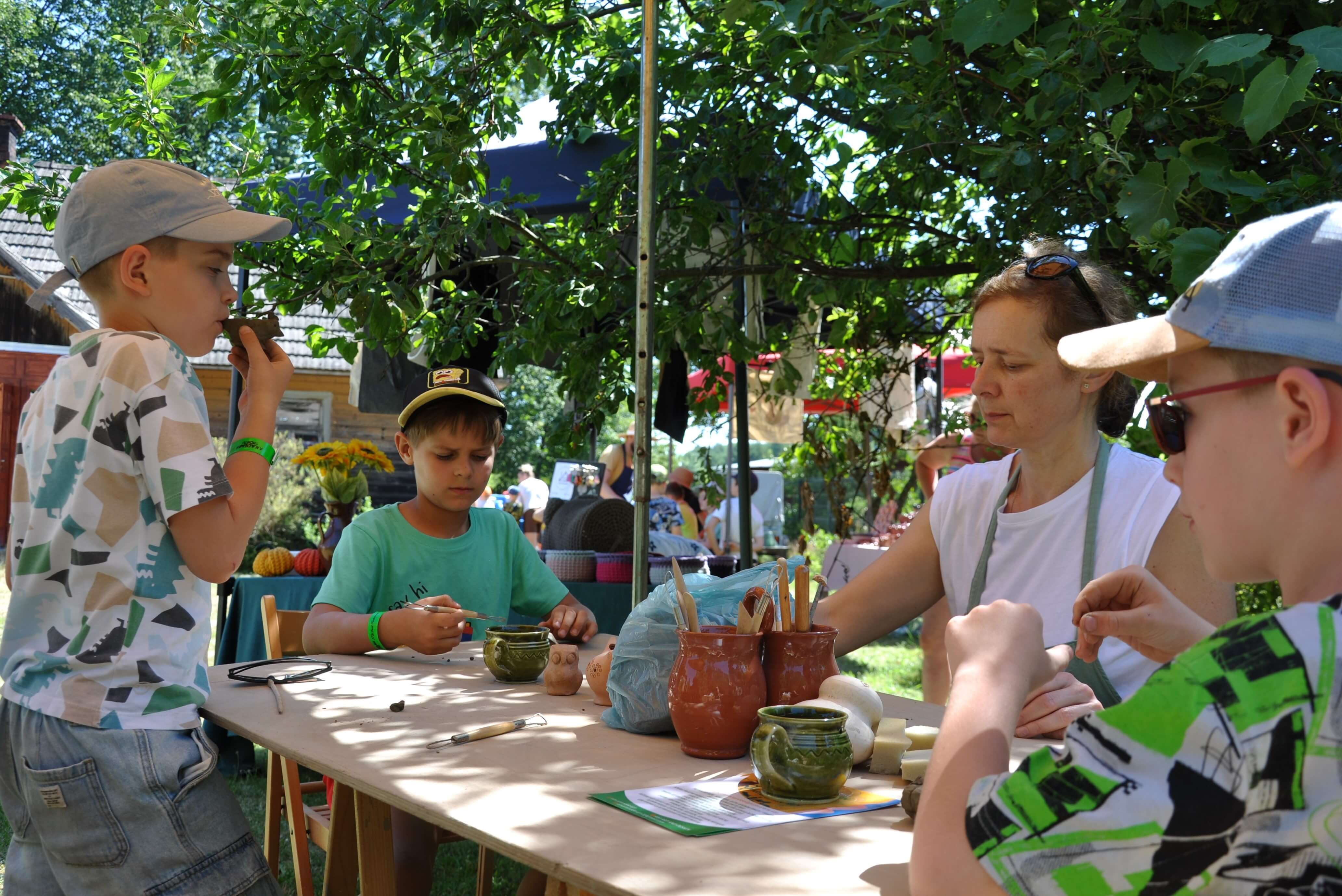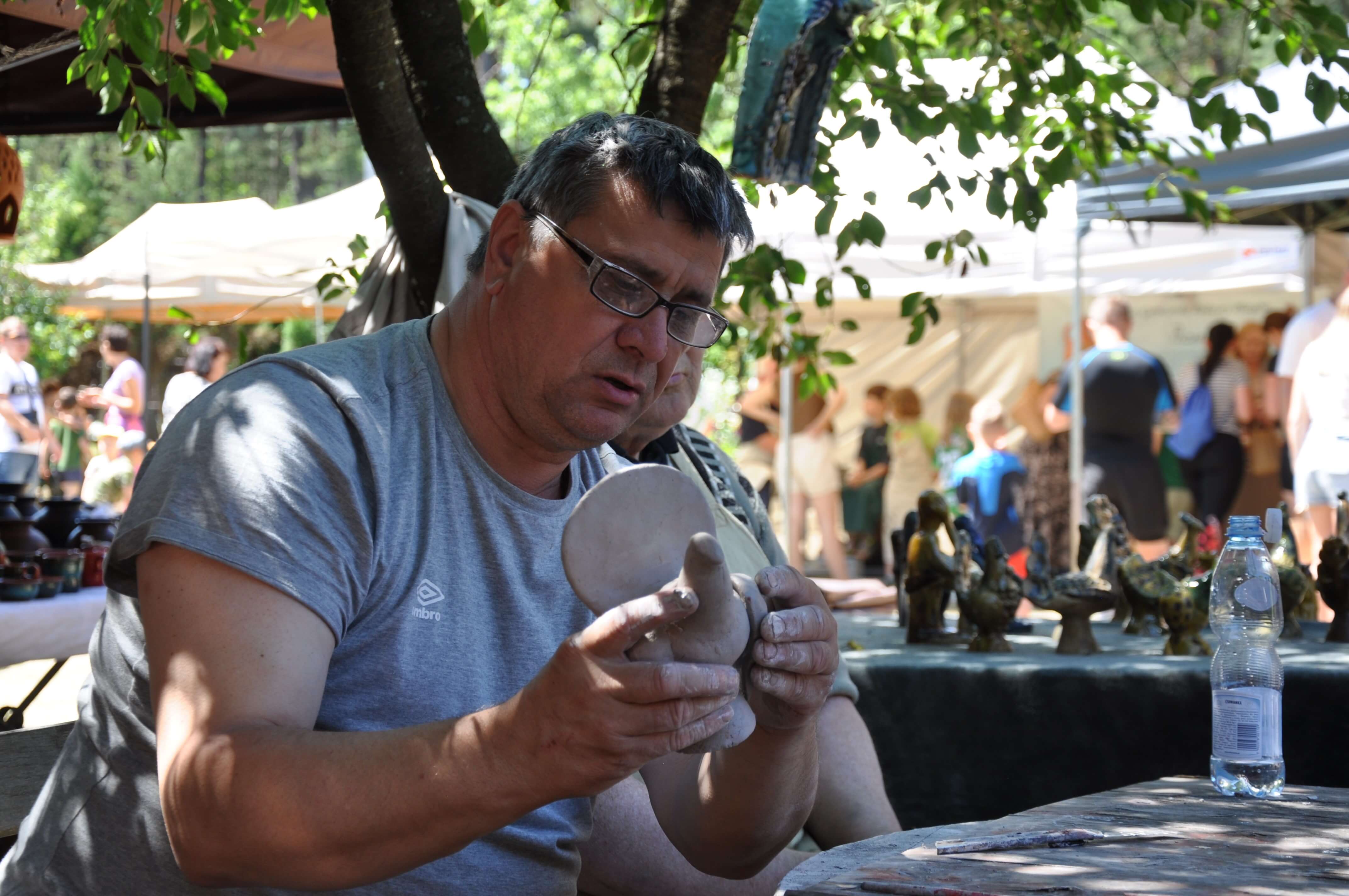 Spod palców uczestników warsztatów ceramiki tradycyjnej i warsztatów ręcznego formowania w glinie wyszły setki naczyń – kubeczków, misek, flakoników, przeróżnego rodzaju figurek, ptaszków i innych drobnych form glinianych. Wszystkie one były owocem pasji i skupienia oraz cennych uwag i niekiedy pomocy mistrzów garncarzy i ceramików. Dla wielu był to pierwszy kontakt z gliną, część to już weterani, którzy w Ogólnopolskich Spotkaniach Garncarskich uczestniczą niemal od pierwszej edycji. Jednym i drugim składamy serdeczne podziękowania. Dziękujemy również (a może przede wszystkim) naszym garncarzom i ceramikom bez których nie byłoby tych wartsztatów.