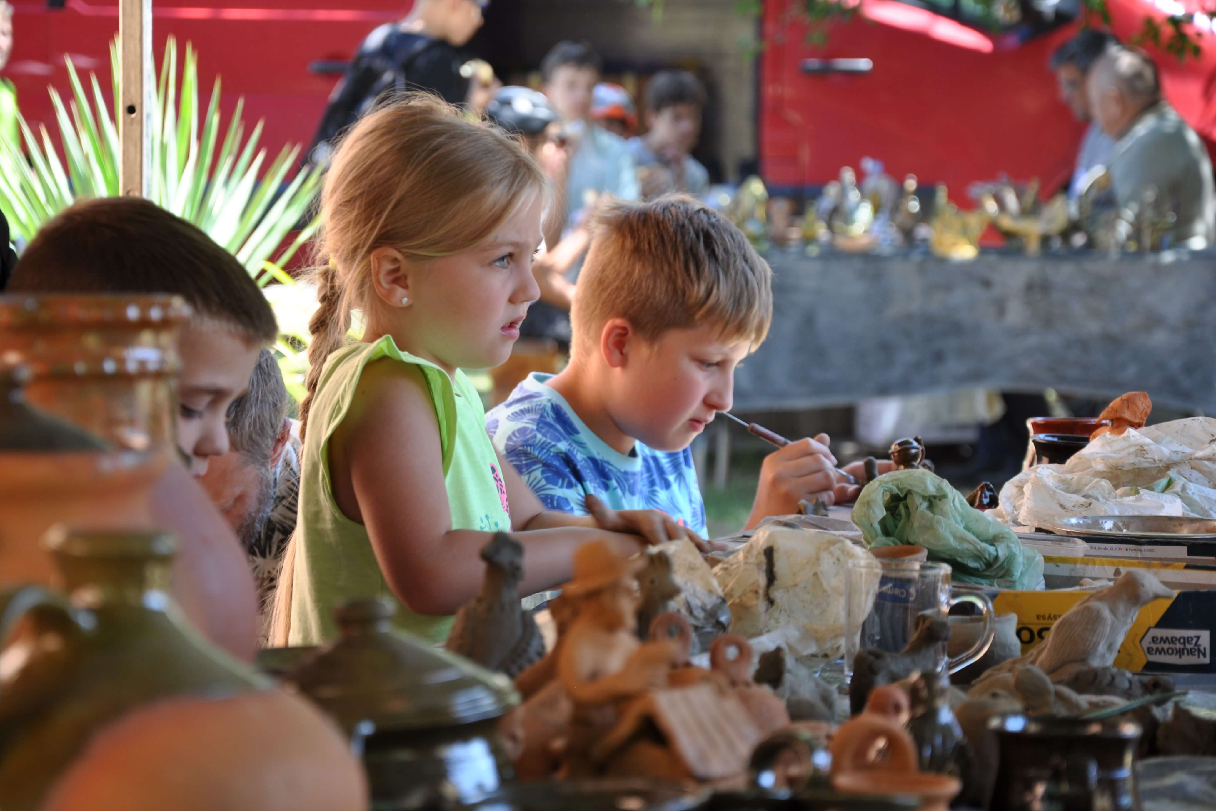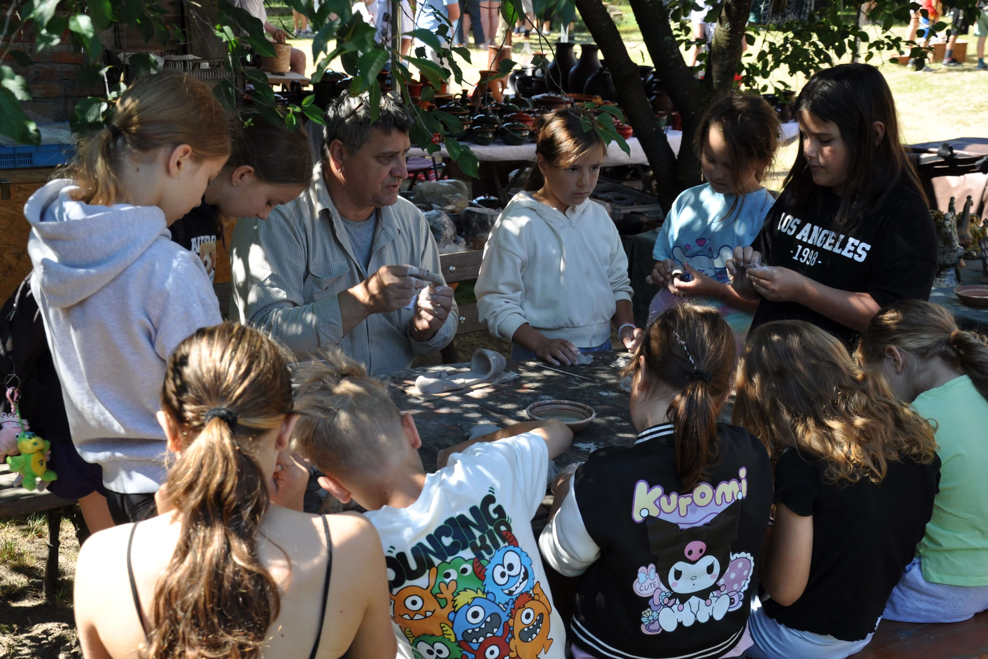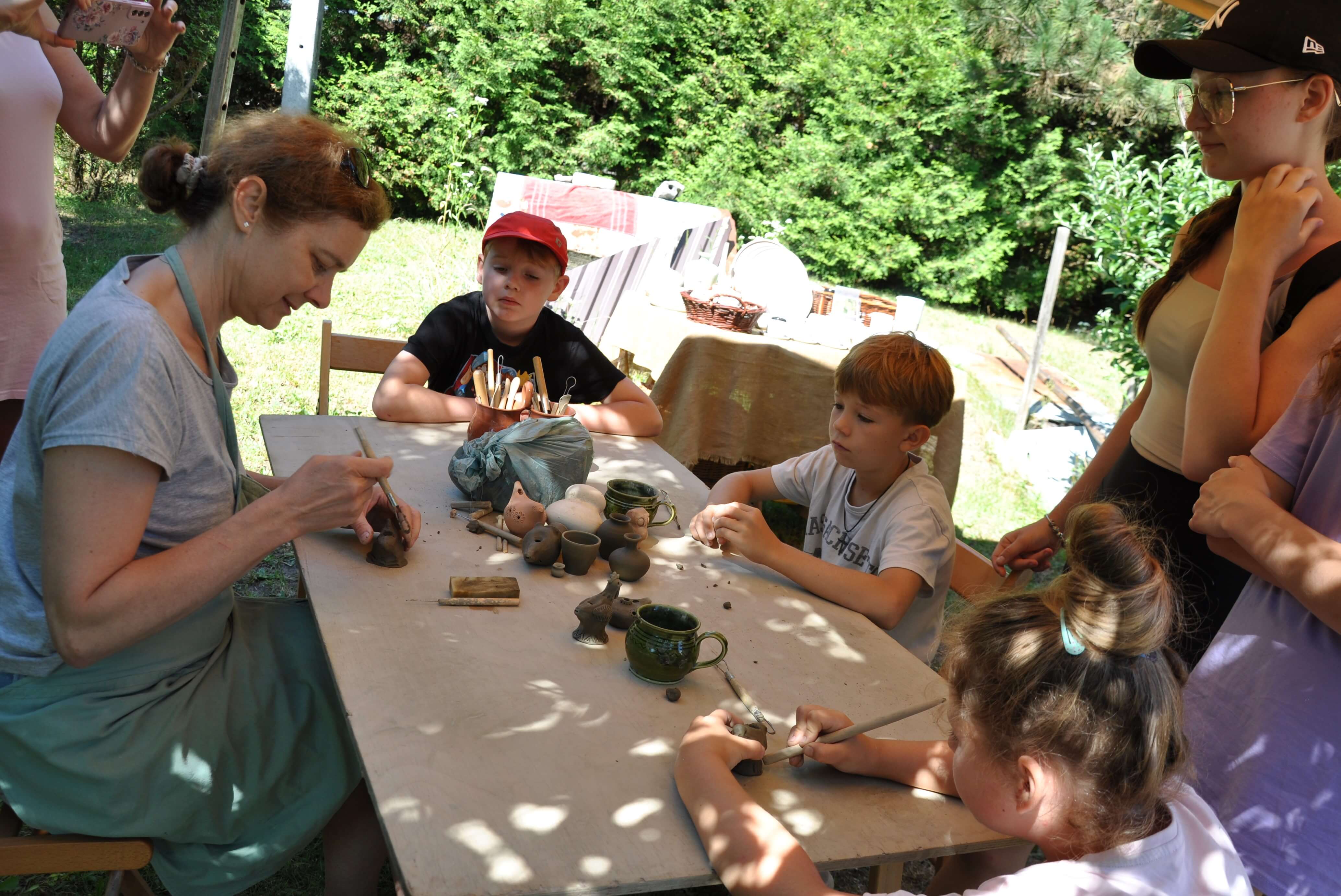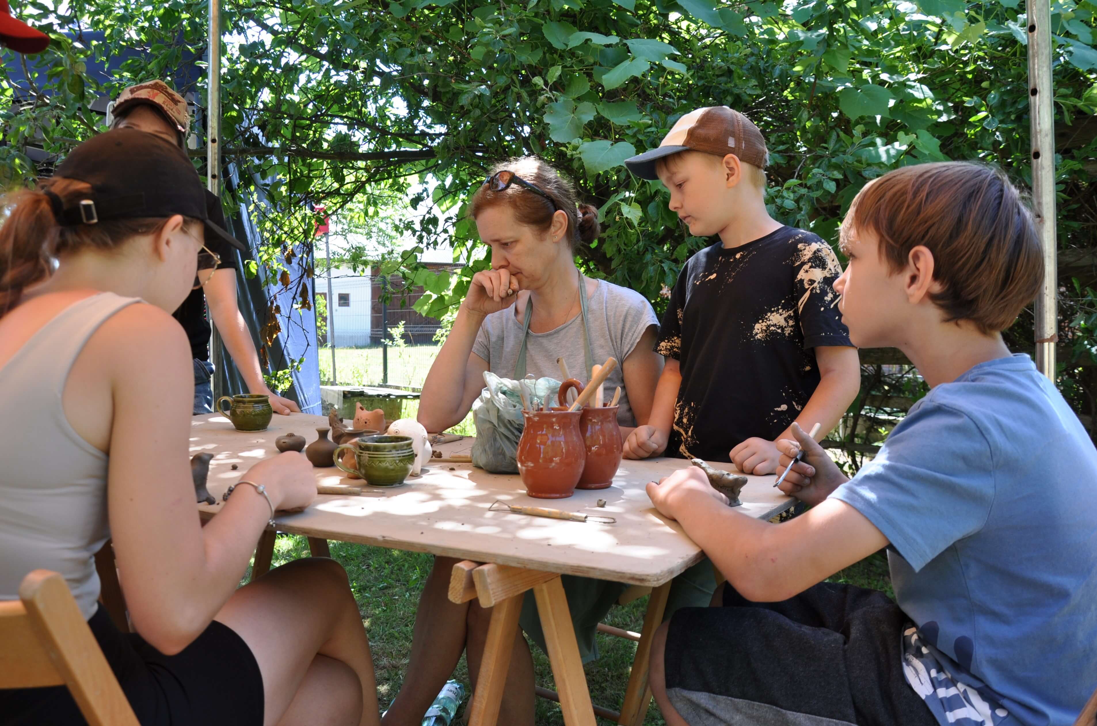 Spod palców uczestników warsztatów ceramiki tradycyjnej i warsztatów ręcznego formowania w glinie wyszły setki naczyń – kubeczków, misek, flakoników, przeróżnego rodzaju figurek, ptaszków i innych drobnych form glinianych. Wszystkie one były owocem pasji i skupienia oraz cennych uwag i niekiedy pomocy mistrzów garncarzy i ceramików. Dla wielu był to pierwszy kontakt z gliną, część to już weterani, którzy w Ogólnopolskich Spotkaniach Garncarskich uczestniczą niemal od pierwszej edycji. Jednym i drugim składamy serdeczne podziękowania. Dziękujemy również (a może przede wszystkim) naszym garncarzom i ceramikom bez których nie byłoby tych wartsztatów.